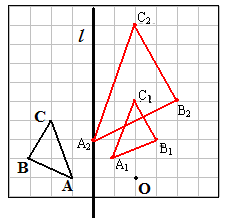 (2)以图中的O为位似中心,将△A1B1C1作位似变换且放大到原来的两倍,得到△A2B2C2.