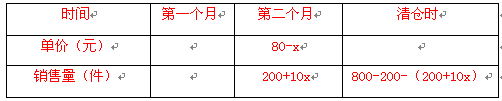 ijÅú·¢ÉÌÒÔÿ¼þ50ÔªµÄ¼Û¸ñ¹º½ø800¼þTÐô£¬µÚÒ»¸öÔÂÒÔµ¥¼Û80ÔªÏúÊÛ£¬ÊÛ³öÁË200¼þ£»µÚ¶þ¸öÔÂÈç¹ûµ¥¼Û²»±ä£¬Ô¤¼ÆÈÔ¿ÉÊÛ³ö200¼þ£¬Åú·¢ÉÌΪÔö¼ÓÏúÊÛÁ¿£¬¾ö¶¨½µ¼ÛÏúÊÛ£¬¸ù¾ÝÊг¡µ÷²é£¬µ¥¼Ûÿ½µµÍ1Ôª£¬¿É¶àÊÛ³ö10¼þ£¬µ«×îµÍµ¥¼ÛÓ¦¸ßÓÚ¹º½øµÄ¼Û¸ñ£»µÚ¶þ¸öÔ½áÊøºó£¬Åú·¢É̽«¶ÔÊ£ÓàµÄTÐôÒ»´ÎÐÔÇå²ÖÏúÊÛ£¬Çå²Öʱµ¥¼ÛΪ40Ôª£¬ÉèµÚ¶þ¸öÔµ¥¼Û½µµÍxÔª¡£