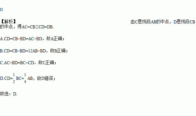 如图,点C是线段AB的中点,点D是线段CB的中点,下列说法错误的是( )