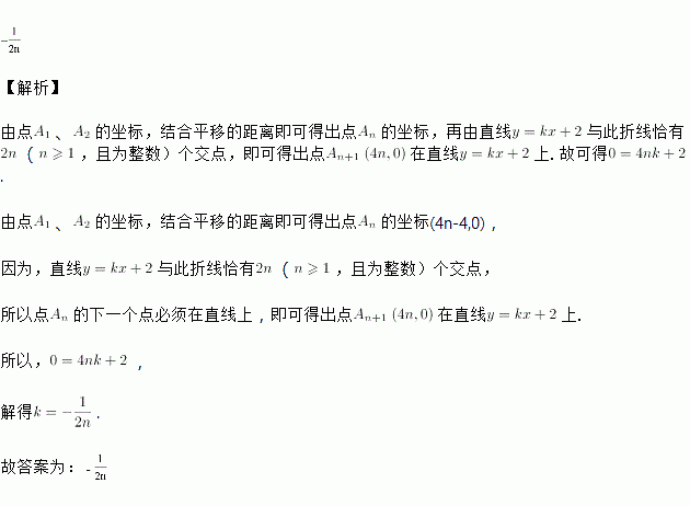 如图,有一条折线,它是由过,,组成的折线依次平移4,8,12,个单位得到的,直线与此折线恰有,且为整数个交点,则k的值为______.