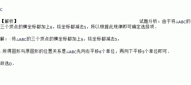 ½«¡÷ABCµÄÈý¸ö¶¥µãµÄºá×ø±ê¶¼¼ÓÉÏ£6£¬×Ý×ø±ê¶¼¼õÈ¥5£¬ÔòËùµÃͼÐÎÓëÔͼÐεĹØÏµÊÇ( )