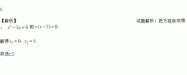 A. x=5 B. x=0 C. x1=0,x2=5 D. x1=0,x2=﹣5