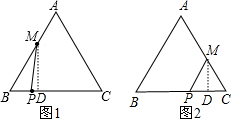 分析:分类讨论:当M点在AB上,作MD⊥BC于D,根据等边三角形性质得AB=BC=6,∠B=60°,则∠BMD=30°,利用含30度的直角三角形三边的关系可求出BD=