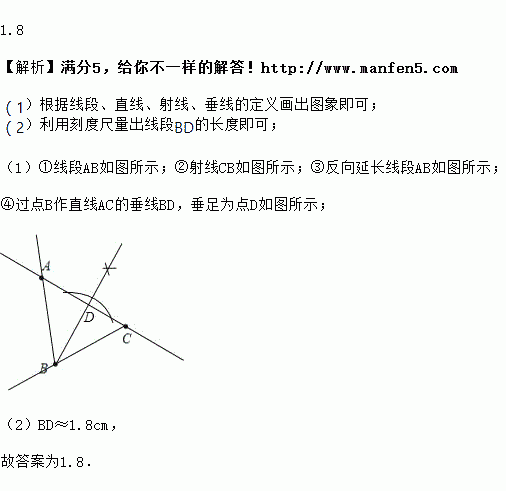(2)请你测量点B到直线AC的距离,大约是 cm.(精确到0.1cm)