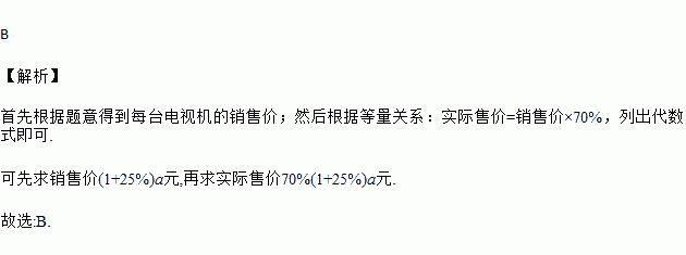 一台电视机成本价为元,销售价比成本价增加,因库存积压,所以就按销售价的出售.那么每台实际售价为( )