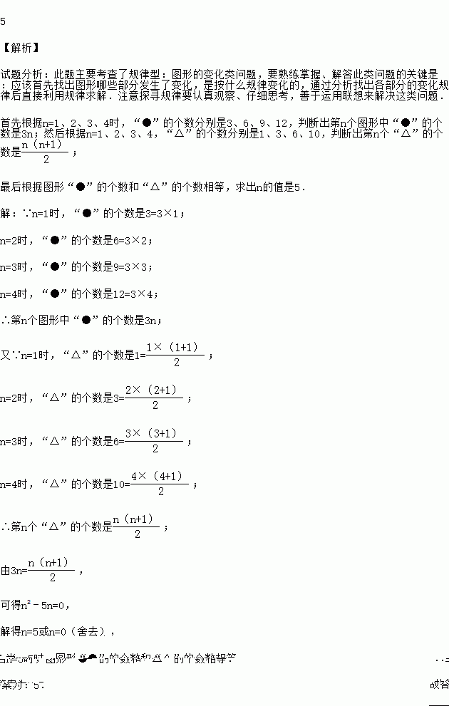 (3分)观察下列图形规律:当n= 时,图形“●”的个数和“△”的个数相等.
