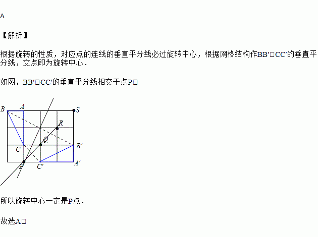 如图,在正方形网格中,将△ABC顺时针旋转后得到△A'B′C′,则下列4个点中能作为旋转中心的是( )