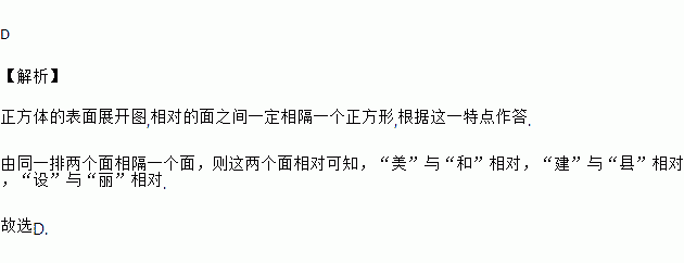 如图,是一个正方体的表面展开图,则原正方体中与“建”字所在的面相对的面上标的字是( )