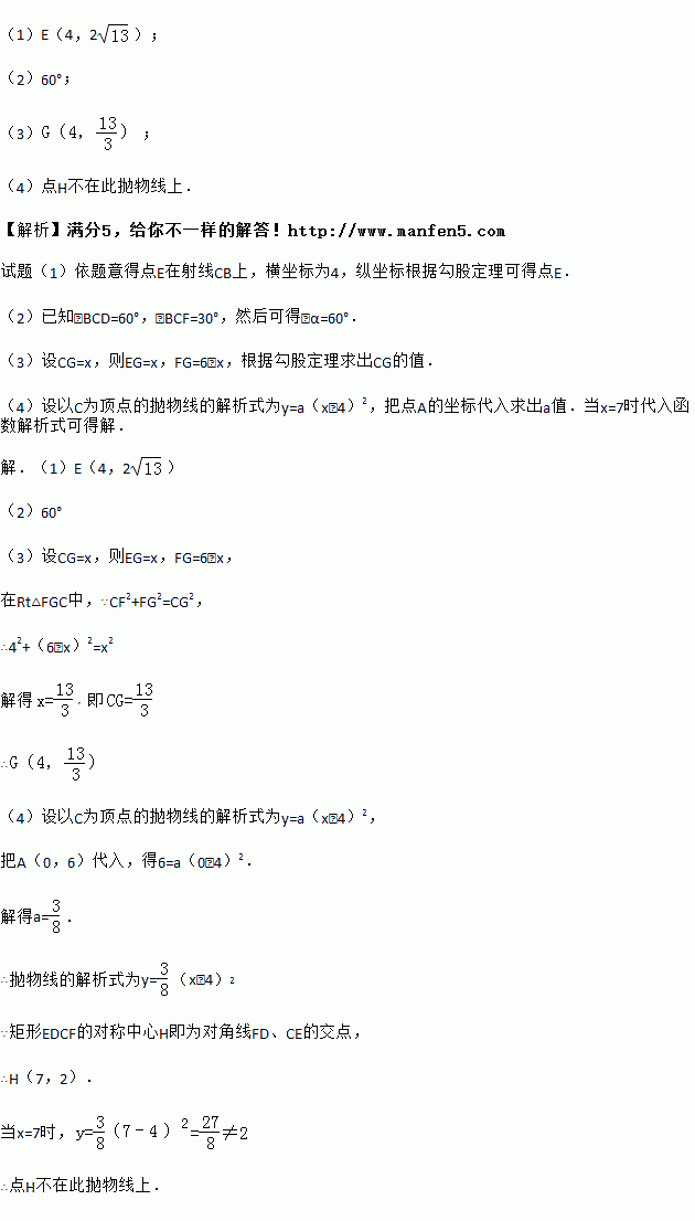 (4)如图③,当旋转角a=90°时,请判断矩形EDCF的对称中心H是否在以C为顶点,且经过点A的抛物线上.