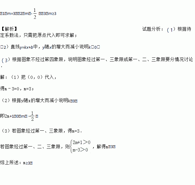 (3)若这个函数是一次函数,且图象不经过第四象限,求m的取值范围.
