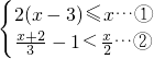 两边同乘以6,然后再移项、系数化为1求得其解,再不等式组解集的口诀:大小小大中间找,来求出不等式组的解.