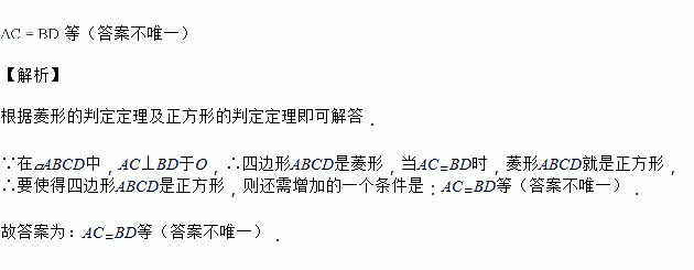 如图,在中,于.若不增加任何字母与辅助线,要使得四边形是正方形,则还需增加的一个条件是________.