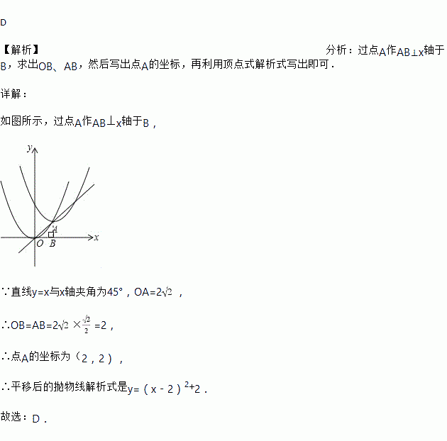 个单位后,其顶点在直线y=x上的A处,那么平移后的抛物线解析式是( )