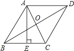 如图,已知菱形ABCD的对角线AC.BD的长分别为6cm、8cm,AE⊥BC于点E,则AE的长是 .