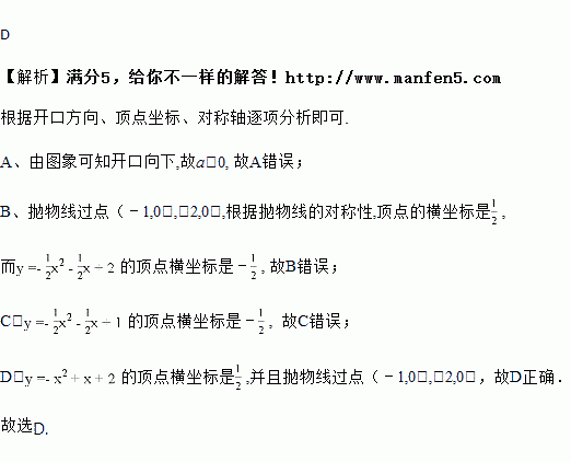 A. y=x2﹣x﹣2 B. y=﹣x2﹣x+2 C. y=﹣x2﹣x+1 D. y=﹣x2+x+2