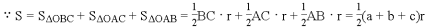阅读材料:已知,如图(1),在面积为S的△ABC中, BC=a,AC=b, AB=c,内切圆O的半径为r连接OA、OB、OC,△ABC被划分为三个小三角形.