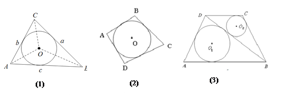 (1)类比推理:若面积为S的四边形ABCD存在内切圆(与各边都相切的圆),如图(2),各边长分别为AB=a,BC=b,CD=c,AD=d,求四边形的内切圆半径r;