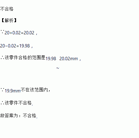 某种零件,标明要求是φ:20±0.02mm(φ表示直径,单位:毫米),经检查,一个零件的直径是19.9mm,该零件______(填“合格”或“不合格”).