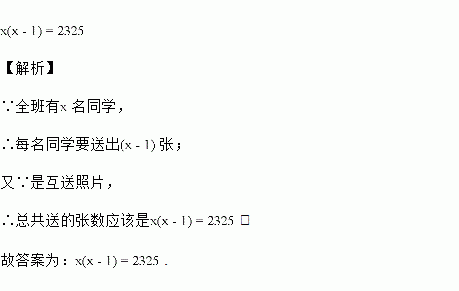 “圣诞节”到了,某校九班每一位同学都将自己购买的贺卡向全班其他同学各送一张表示祝贺,全班送了张贺卡.如果全班有名同学,根据题意,列出方程为________.