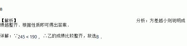 =82分,S甲2=245,S乙2=190,那么成绩较为整齐的是()