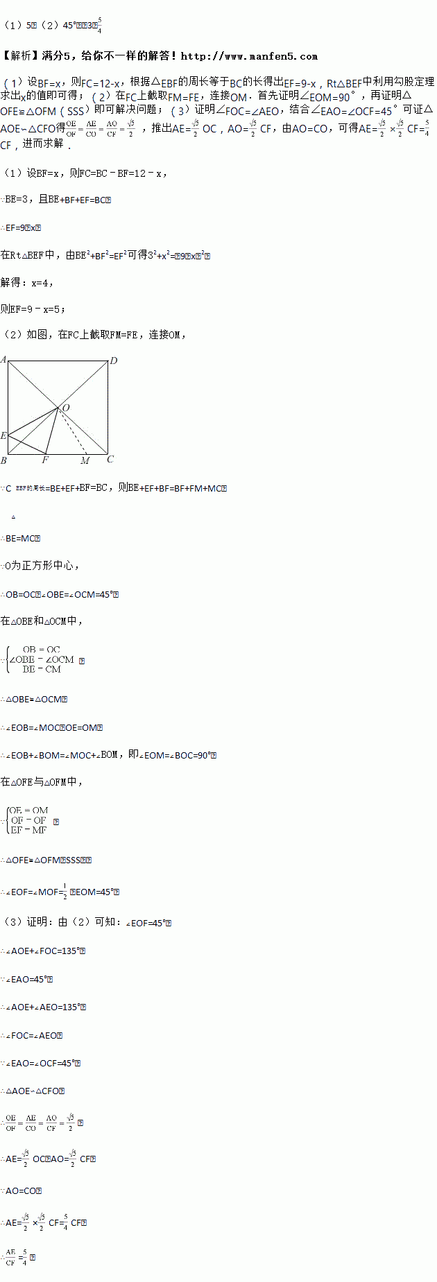 如图,O为正方形ABCD对角线的交点,E为AB边上一点,F为BC边上一点,△EBF的周长等于BC的长.