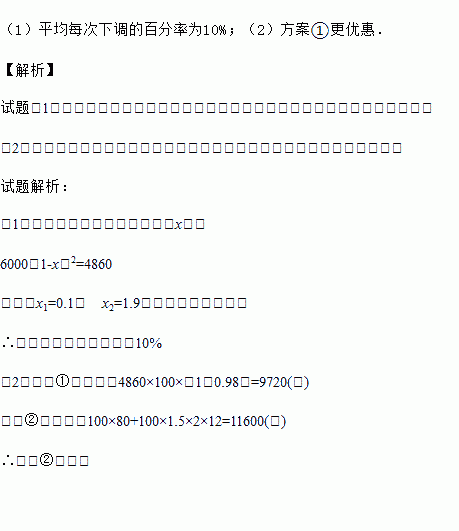 广安市某楼盘准备以每平方米6000元的均价对外销售,由于国务院有关房地产的新政策出台后,购房者持币观望,房地产开发商为了加快资金周转,对价格经过两次下调后,决定以每平方米4860元的均价开盘销售.