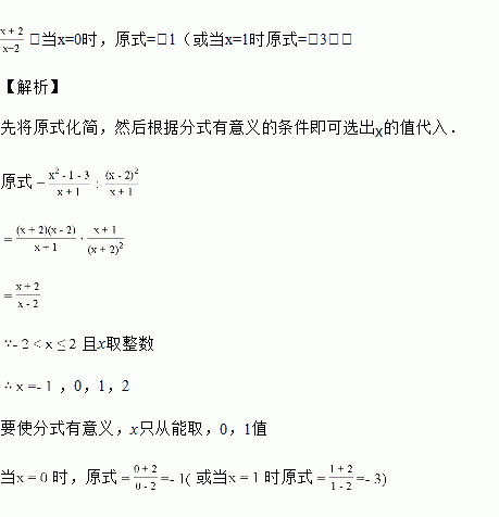先化简,再求值:(x﹣1﹣)÷,然后从满足﹣2<x≤2的整数中选择一个你喜欢的数代入求值.