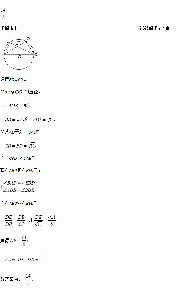 如图, 为⊙的直径, 为⊙上一点,弦平分,交于点, ,则的长为________.