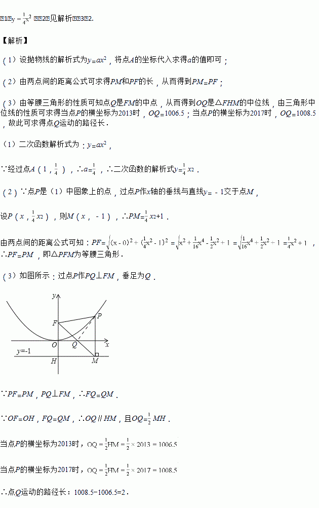 (3)作PQFM于点Q,当点P从横坐标2013处运动到横坐标2017处时,请求出点Q运动的路径长. ![]()