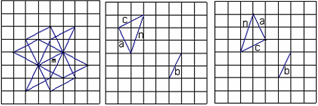 (2)在图②中,平移a、b、c中的两条线段,使它们与线段n构成以n为一边的等腰直角三角形.(画一个即可)