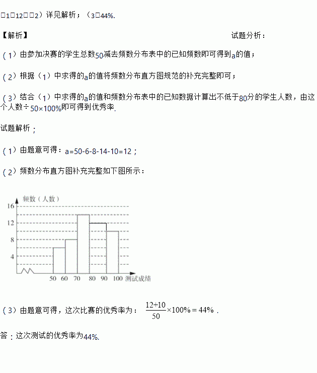 (2)若测试成绩不低于80分为优秀,则本次测试的优秀率是多少?