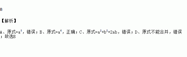 A. a2·a3=a6 B. (a2)3=a6 C. (a+b)2=a2+b2 D.