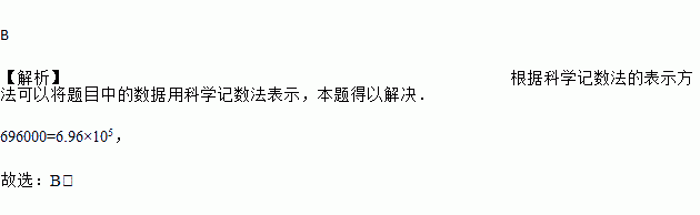 A. 0.696×106 B. 6.96×105 C. 0.696×107 D. 6.96×108