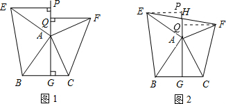 如图1,△ABC中,AG⊥BC于点G,以A为直角顶点,分别以AB、AC为直角边,向△ABC外作等腰Rt△ABE和等腰Rt△ACF,过点E、F作射线GA的垂线,垂足分别为P、Q.