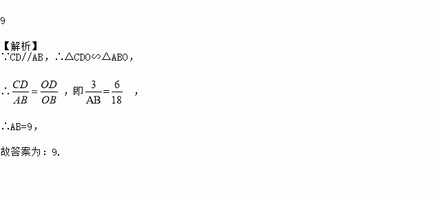 如图,小明用长为3m的竹竿CD做测量工具,测量学校旗杆AB的高度,移动竹竿,使竹竿与旗杆的顶端C、A与O点在一条直线上,则根据图中数据可得旗杆AB的高为________m.