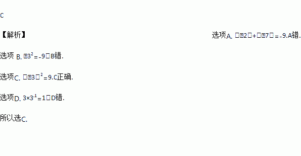 A. (﹣2)+(﹣7) B. ﹣32 C. (﹣3)2 D. 3×3﹣1