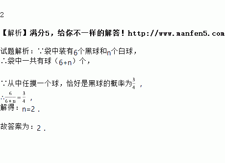 袋中装有6个黑球和n个白球,经过若干次试验,发现“若从袋中任摸出一个球,恰是黑球的概率为”,则这个袋中白球大约有_____个.