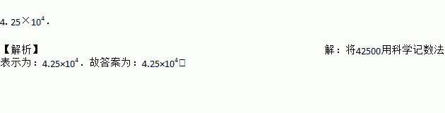 天宫二号在太空绕地球一周大约飞行42500千米,将42500用科学记数法表示为______.