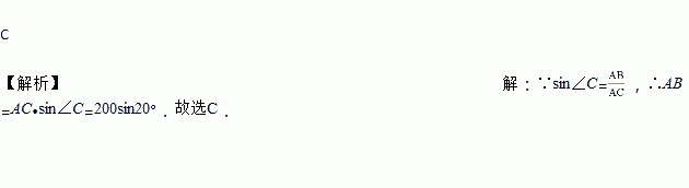如图,滑雪场有一坡角α为20°的滑雪道,滑雪道AC的长为200米,则滑雪道的坡顶到坡底垂直高度AB的长为( )