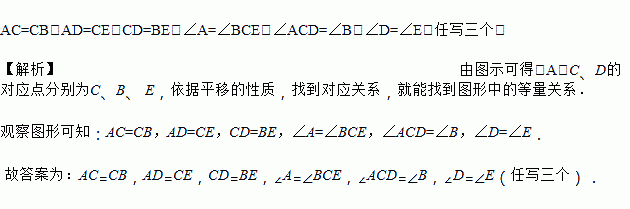 如图,△ACD通过平移得到△CBE,请找出图中的等量关系:______________(至少三组)