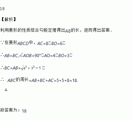 (题文)如图,在菱形ABCD中,AC=8,BD=6,则△ABC的周长是_____.