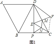 £¨1£©Èçͼ1£¬ÈôµãEÔÚDPÉÏ£¬EFÓëDC½»ÓÚµãM£¬ÊÔ̽¾¿Ïß¶ÎNPÓëÏß¶ÎNMµÄÊýÁ¿¹ØÏµ¼°¡ÏABDÓë¡ÏMNPÂú×ãµÄµÈÁ¿¹ØÏµ£¬ÇëÖ±½Óд³öÄãµÄ½áÂÛ£»
