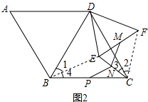 ·ÖÎö£º£¨1£©ÓÉÔÚ?ABCDÖУ¬¡ÏA=¡ÏDBC£¬Ò×Ö¤µÃ¡÷DBCÊǵÈÑüÈý½ÇÐΣ¬ÓÖÓÉ¡÷DEFÊǵÈÑüÈý½ÇÐΣ¬ÀûÓÃÈýÏߺÏÒ»µÄ֪ʶ£¬¿ÉÖ¤µÃCDÊÇEFµÄ´¹Ö±Æ½·ÖÏߣ¬È»ºóÓÉÖ±½ÇÈý½ÇÐεÄÐÔÖÊÓëÈý½ÇÐÎÖÐλÏßµÄÐÔÖÊ£¬Ö¤µÃ½áÂÛ£»