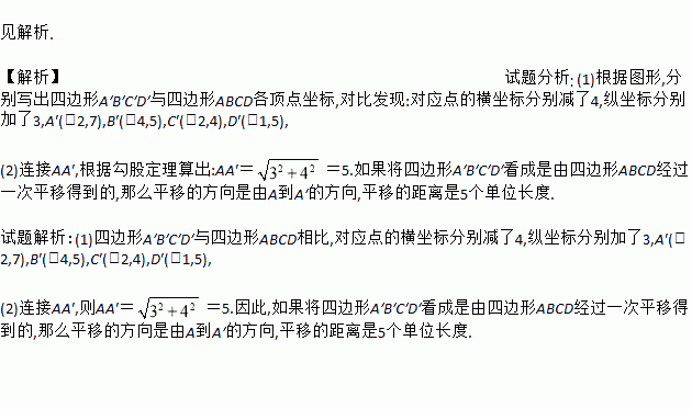 (2)如果将四边形A′B′C′D′看成是由四边形ABCD经过一次平移得到的,请指出这一平移的方向和距离.