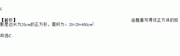 当棱长为20cm正方体的某个面平行于投影面时,这个面的正投影的面积为( )