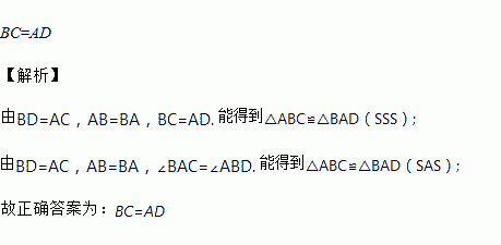 如图,已知BD=AC,那么添加一个_____条件后,能得到△ABC≌△BAD(只填一个即可).