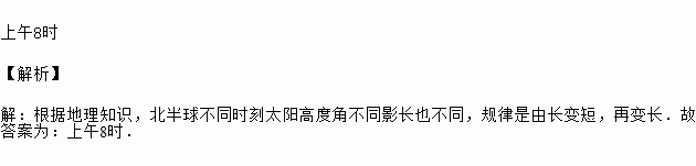 小亮在上午8时,9时30分,10时,12时四次到室外的阳光下观察向日葵的头茎随太阳转动的情况,无意之中,他发现这四个时刻向日葵影子的长度各不相同,那么影子最长的时刻为________.