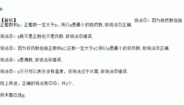 ①0是最小的自然数;②0是最小的正数;③0是最小的非负数;