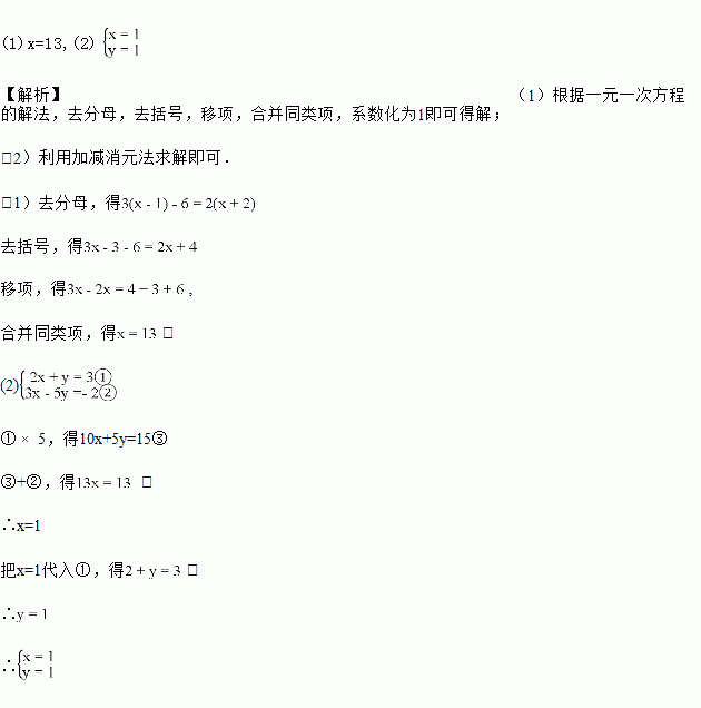 (1)解方程 (2)解方程组