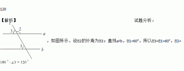 如图,直线a∥b,∠1=60° ,则∠2=__________°.